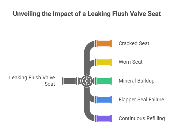 Yes. A damaged or uneven valve seat can cause incomplete sealing, which leads to frequent refilling and occasional hammering sounds as water pressure fluctuates inside the tank.